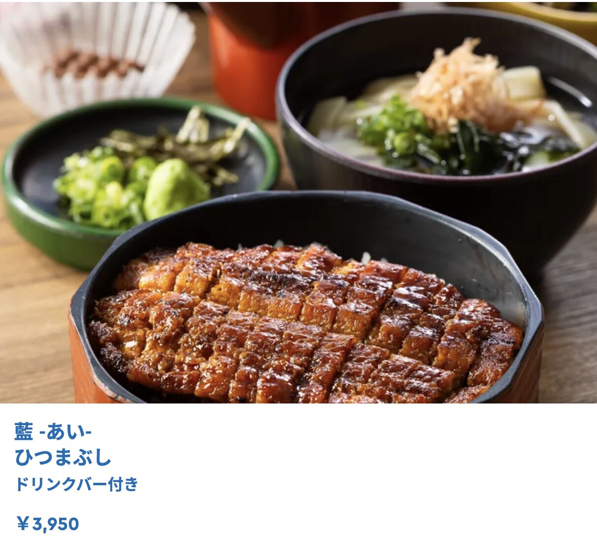 藍 -あい- 三河一色産うなぎのひつまぶし膳:3,950円